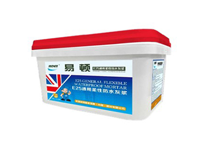 产品简介:易顿E25通用柔性防水灰浆是用以..丙烯酸酯等聚合物乳液和水泥为主要原料,加入其他外加剂制得的双组分水性建筑防水材料,两组分在现场搅拌成均匀、细腻浆料,涂刷于机体表面,固化后可形成柔韧、高强的防水涂膜。